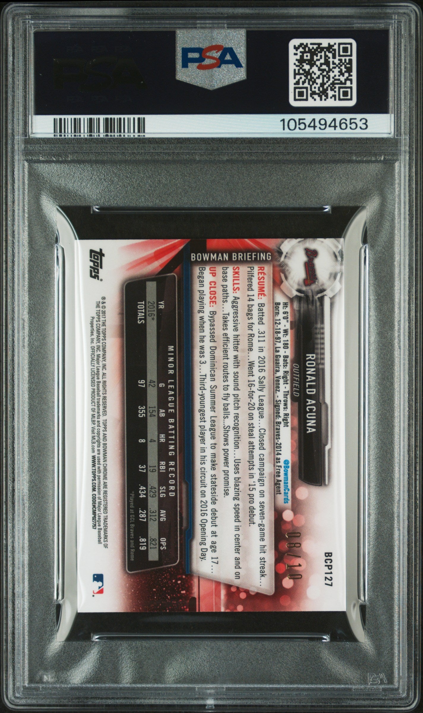 2017 Bowman Chrome Mini Ronald Acuna Jr BCP127 1st Red Refractor /10 PSA 9 Rare!