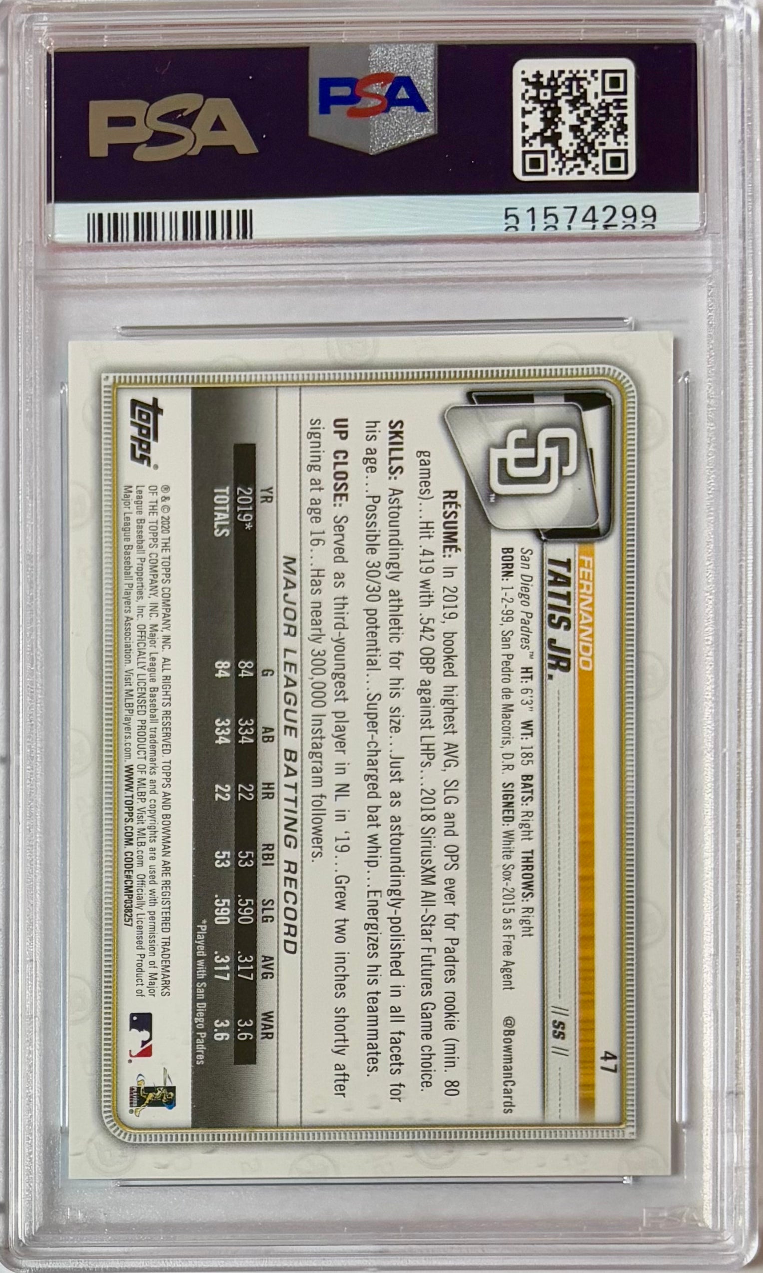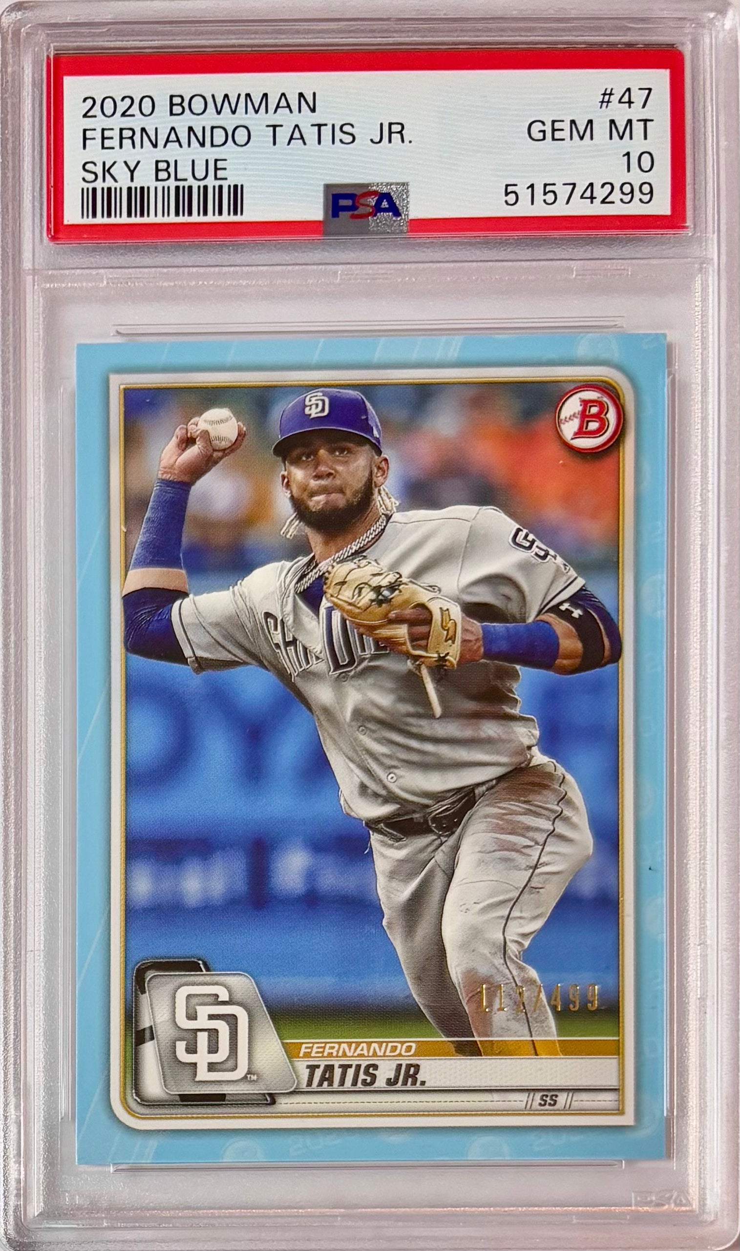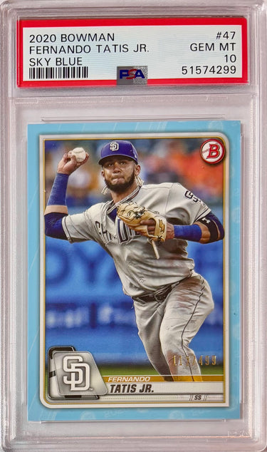 2020 Bowman Fernando Tatis Jr. #47 Sky Blue Parallel /499 Graded PSA 10 Gem Mint! Rare Padres!