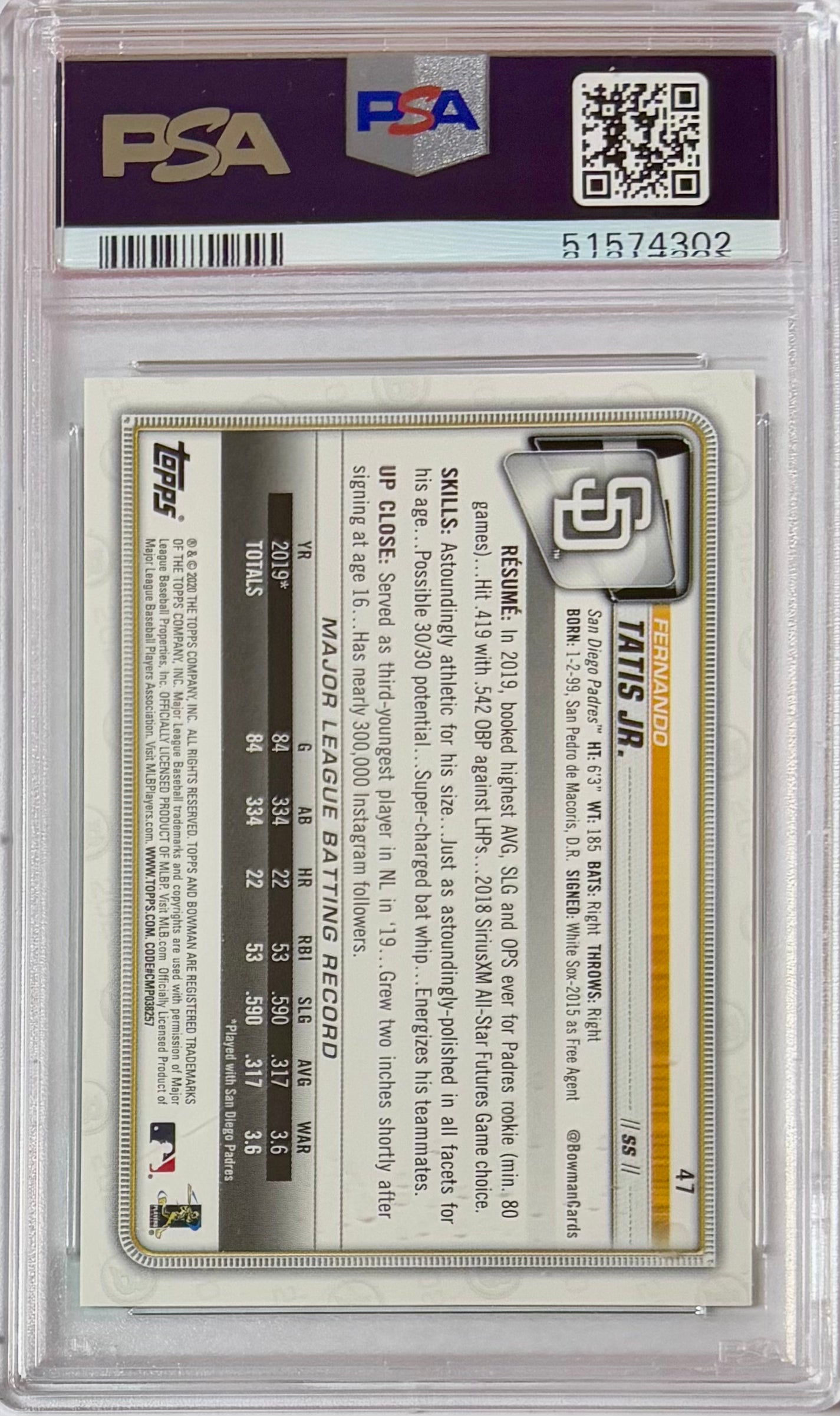 2020 Bowman Fernando Tatis Jr. #47 Green Parallel /99 Graded PSA 9 Mint! Rare Padres!