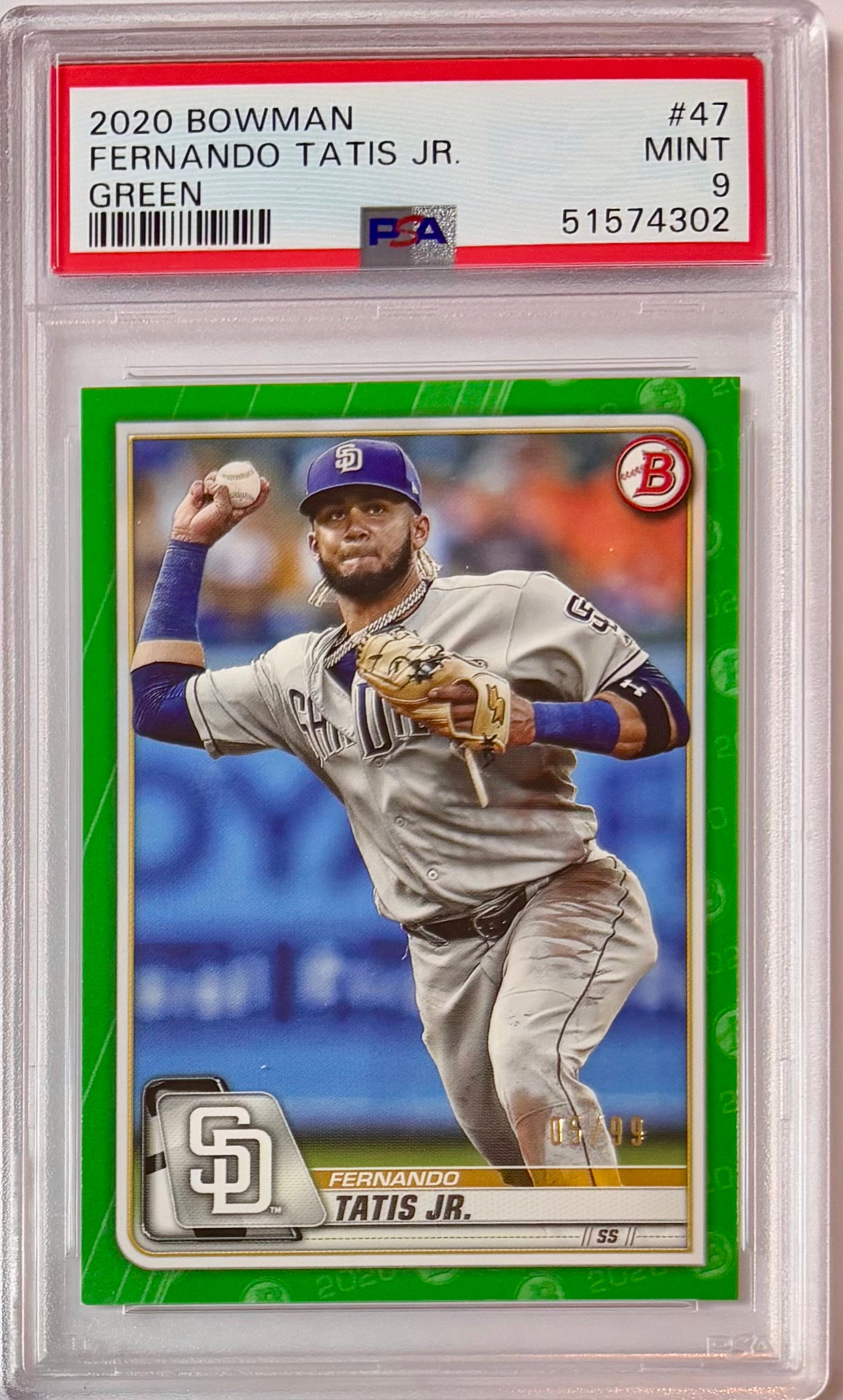 Home 2020 Bowman Fernando Tatis Jr. #47 Green Parallel /99 Graded PSA 9 Mint! Rare Padres!