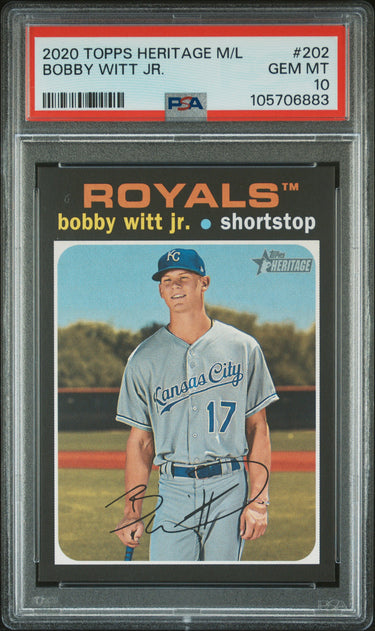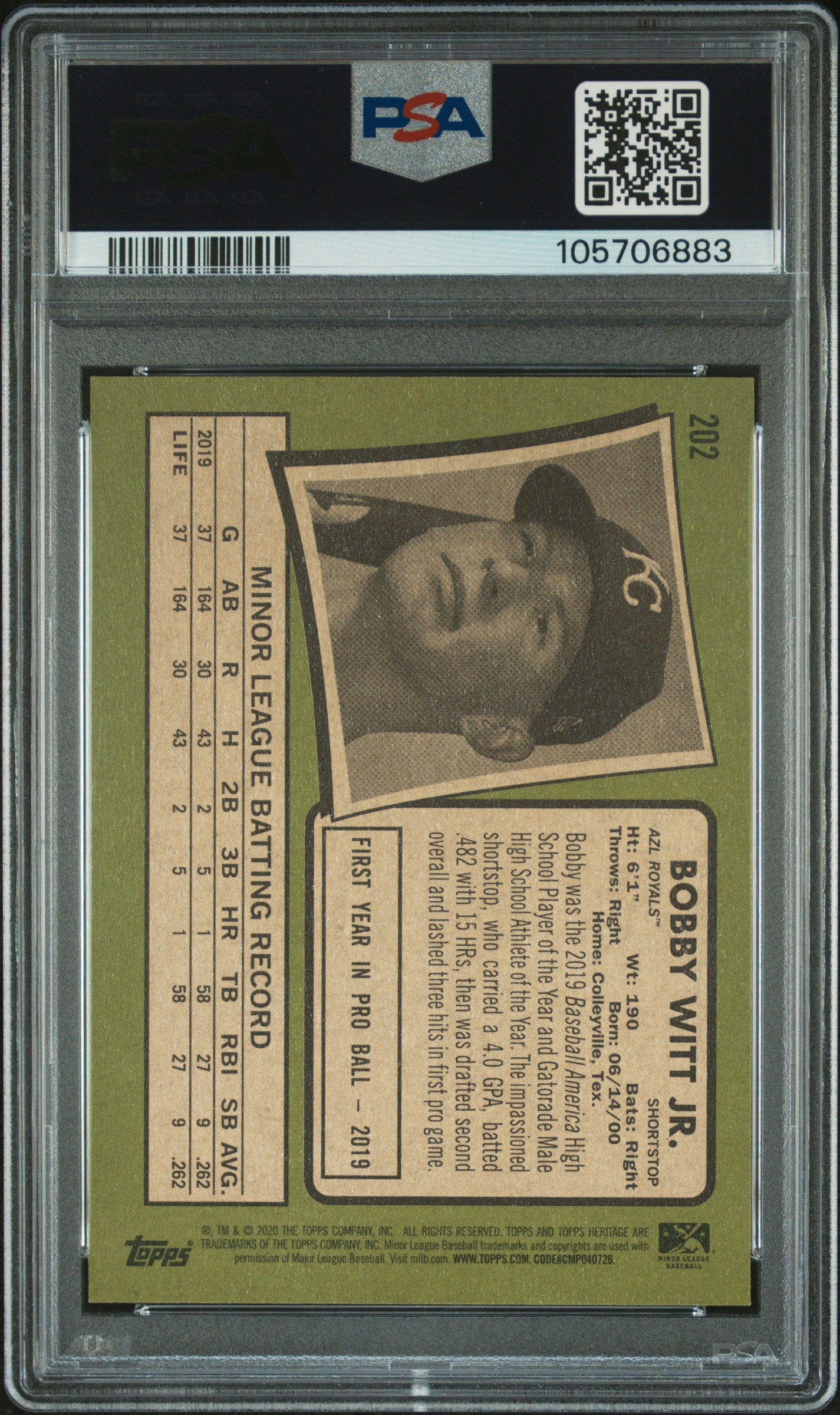 2020 TOPPS HERITAGE MINOR LEAGUE BOBBY WITT JR. #202 SP GRADED PSA 10 GEM MINT RARE!
