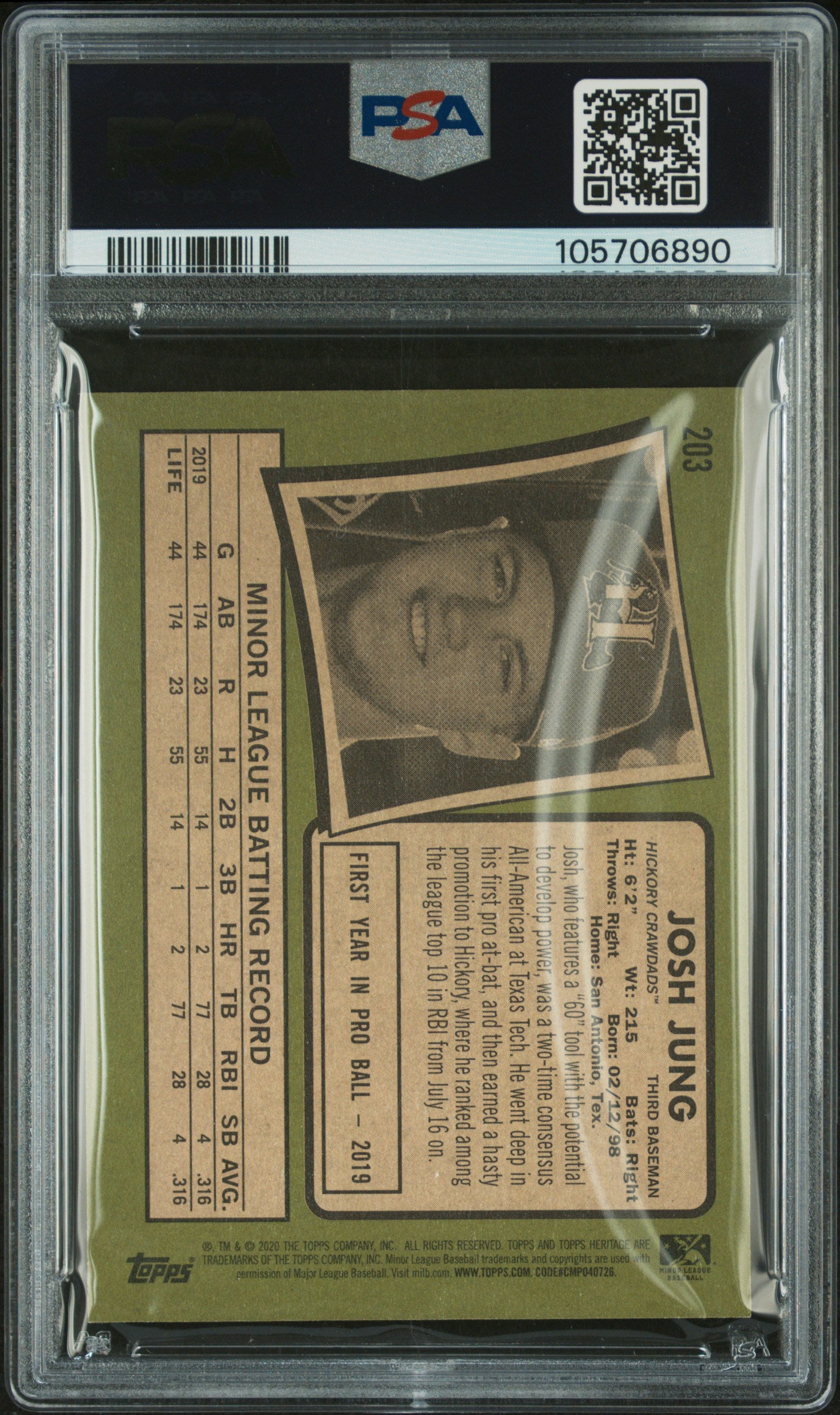 2020 Topps Heritage Minor League Josh Jung #203 High Number SP Graded PSA 10 Gem Mint Rare!