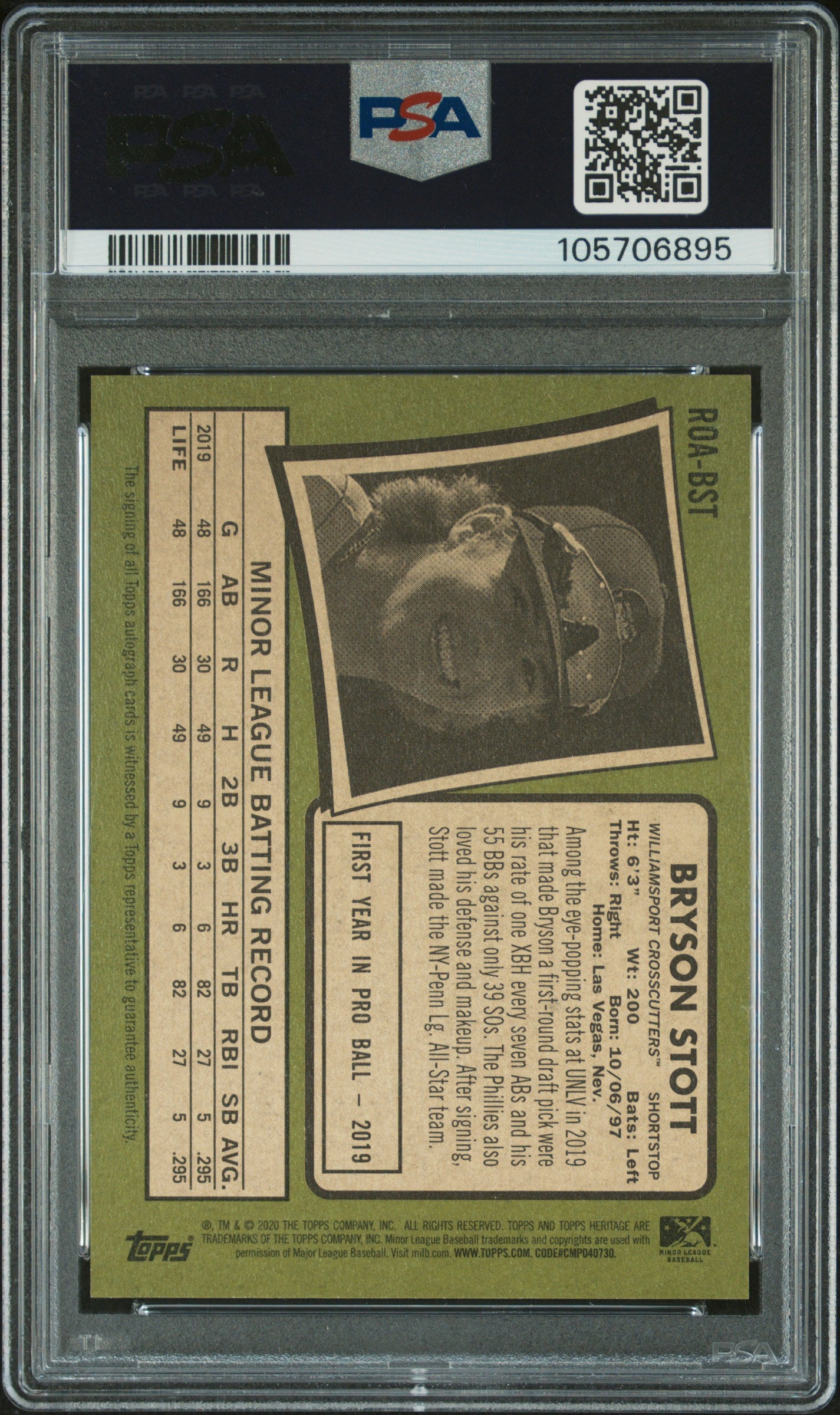 2020 Topps Heritage Minor League Bryson Stott Real One Auto #BST Graded PSA 9 Mint Rare!