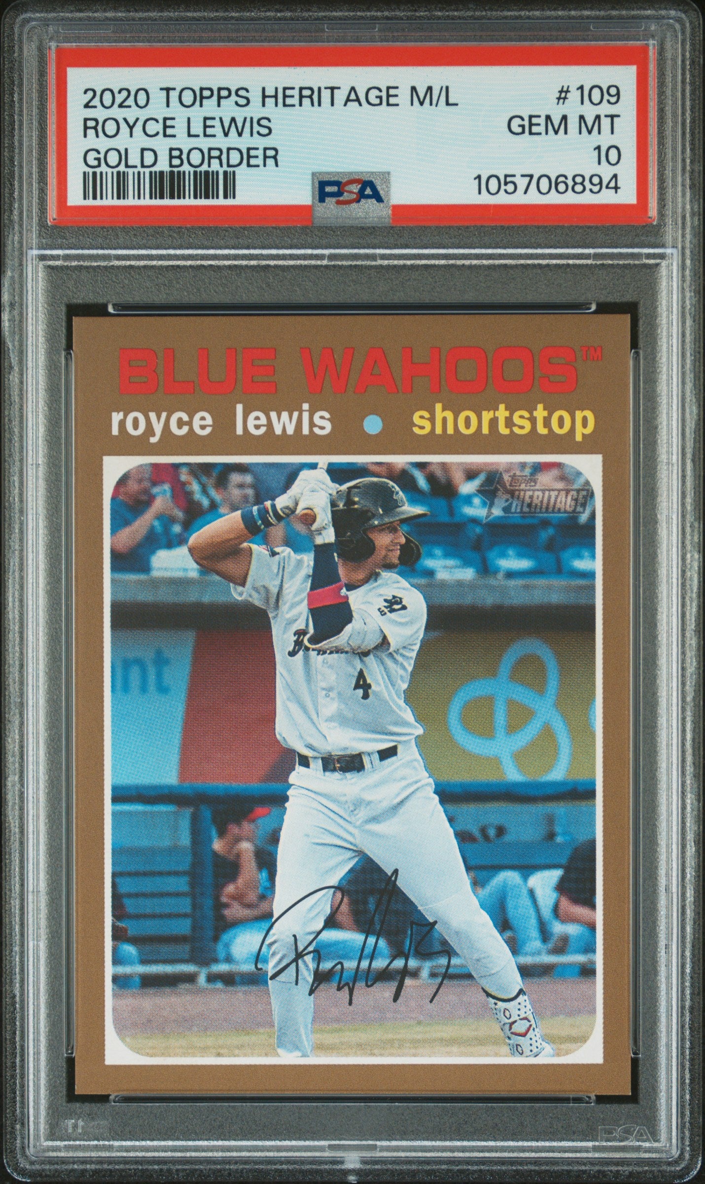 2020 Topps Heritage Minor League Royce Lewis #109 Gold Border /15 PSA 10 Gem Mint *POP 1*