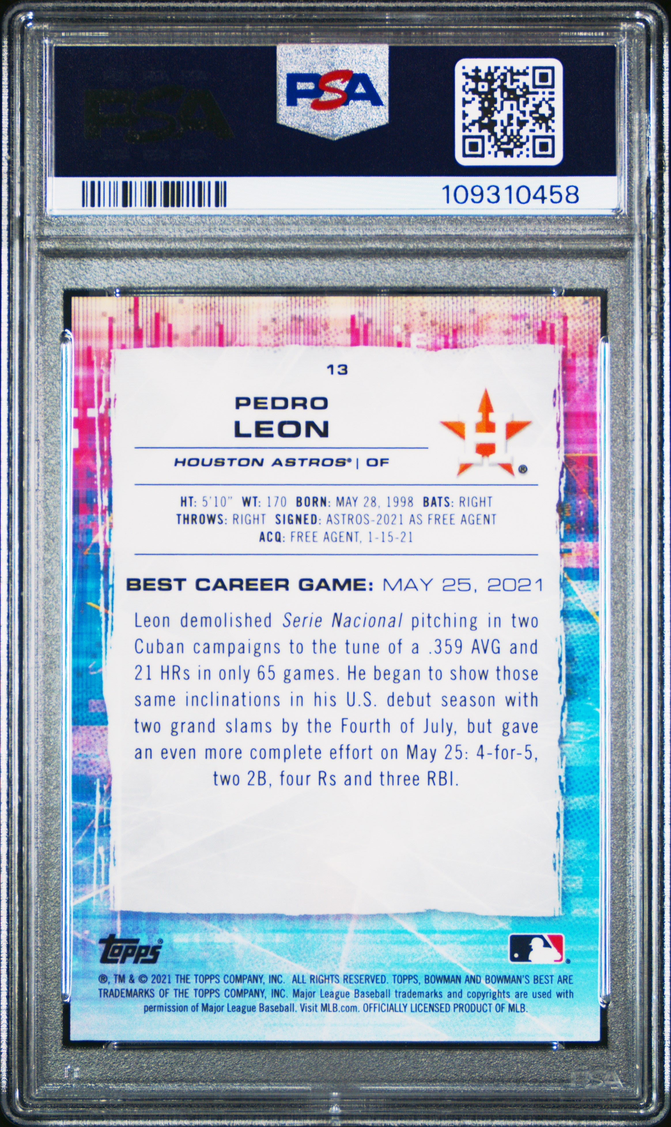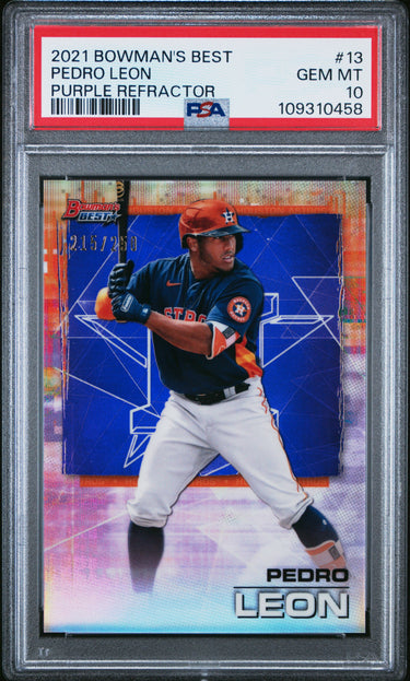 2021 BOWMAN'S BEST PEDRO LEON #13 PURPLE REFRACTOR RC /250 PSA 10 GEM MINT *POP 1*