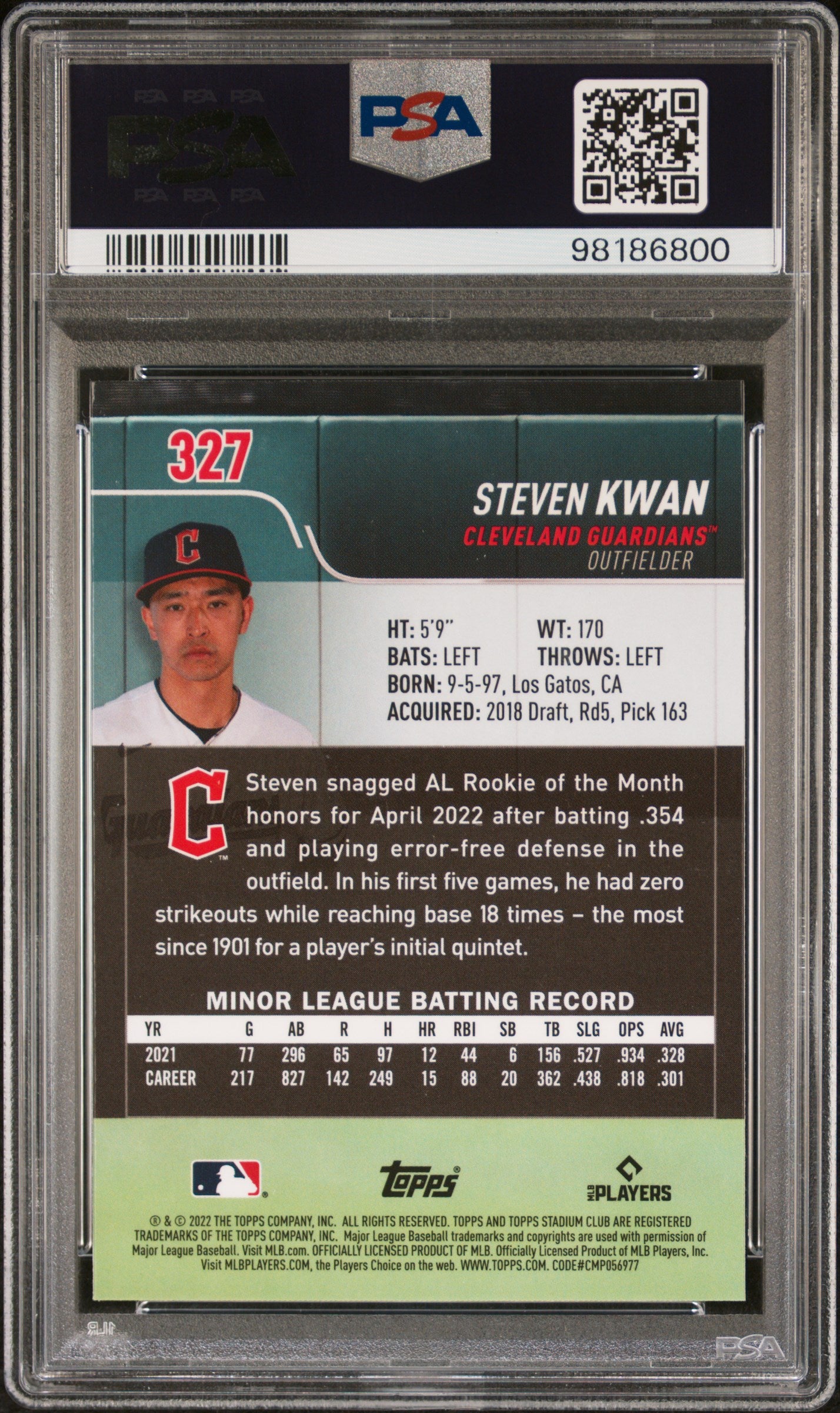 Home 2022 TOPPS STADIUM CLUB CHROME STEVEN KWAN #327 ROOKIE RC PSA 10 GEM MINT RARE!