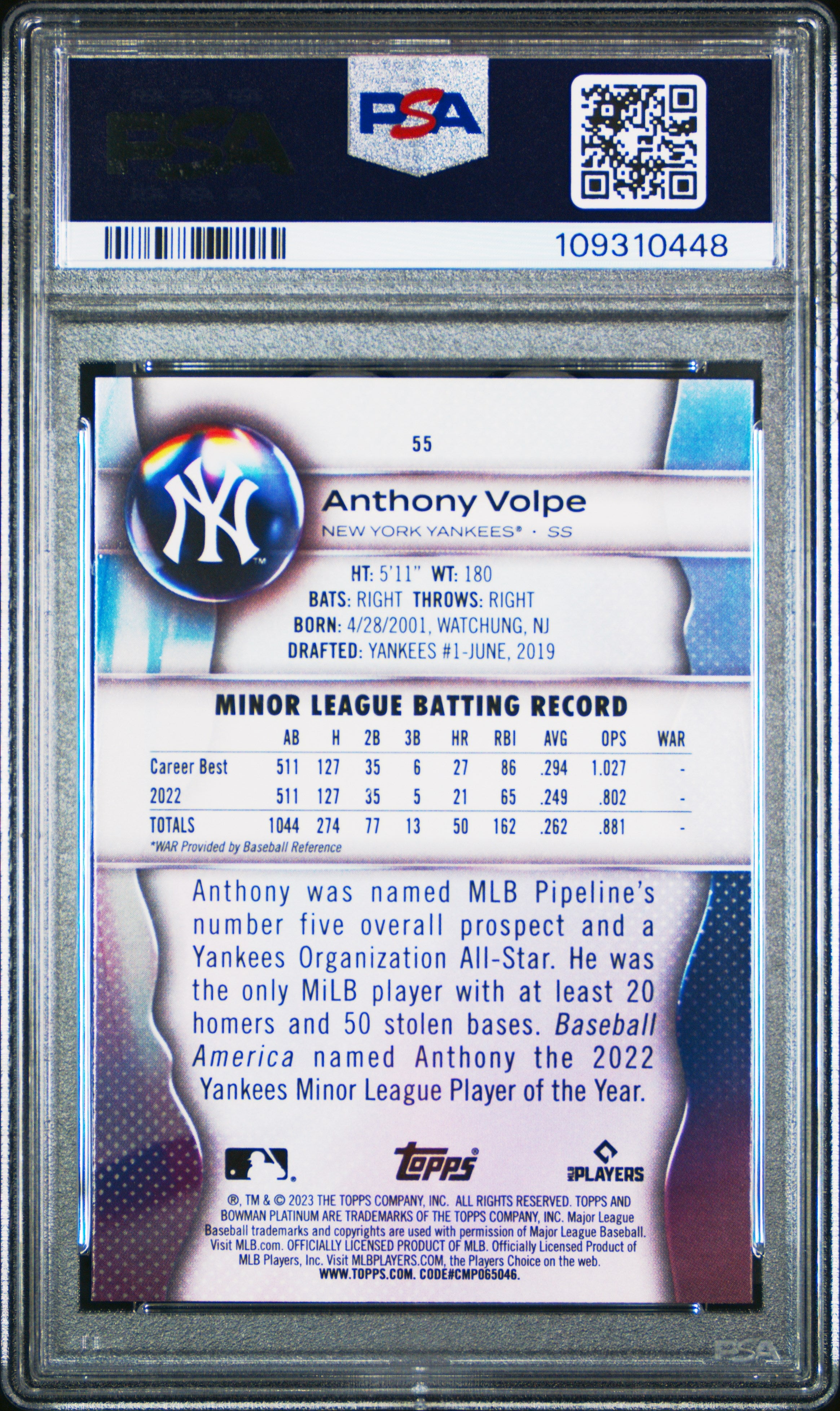 2023 BOWMAN PLATINUM ANTHONY VOLPE #55 ICE FOIL ROOKIE RC PSA 10 GEM MINT RARE