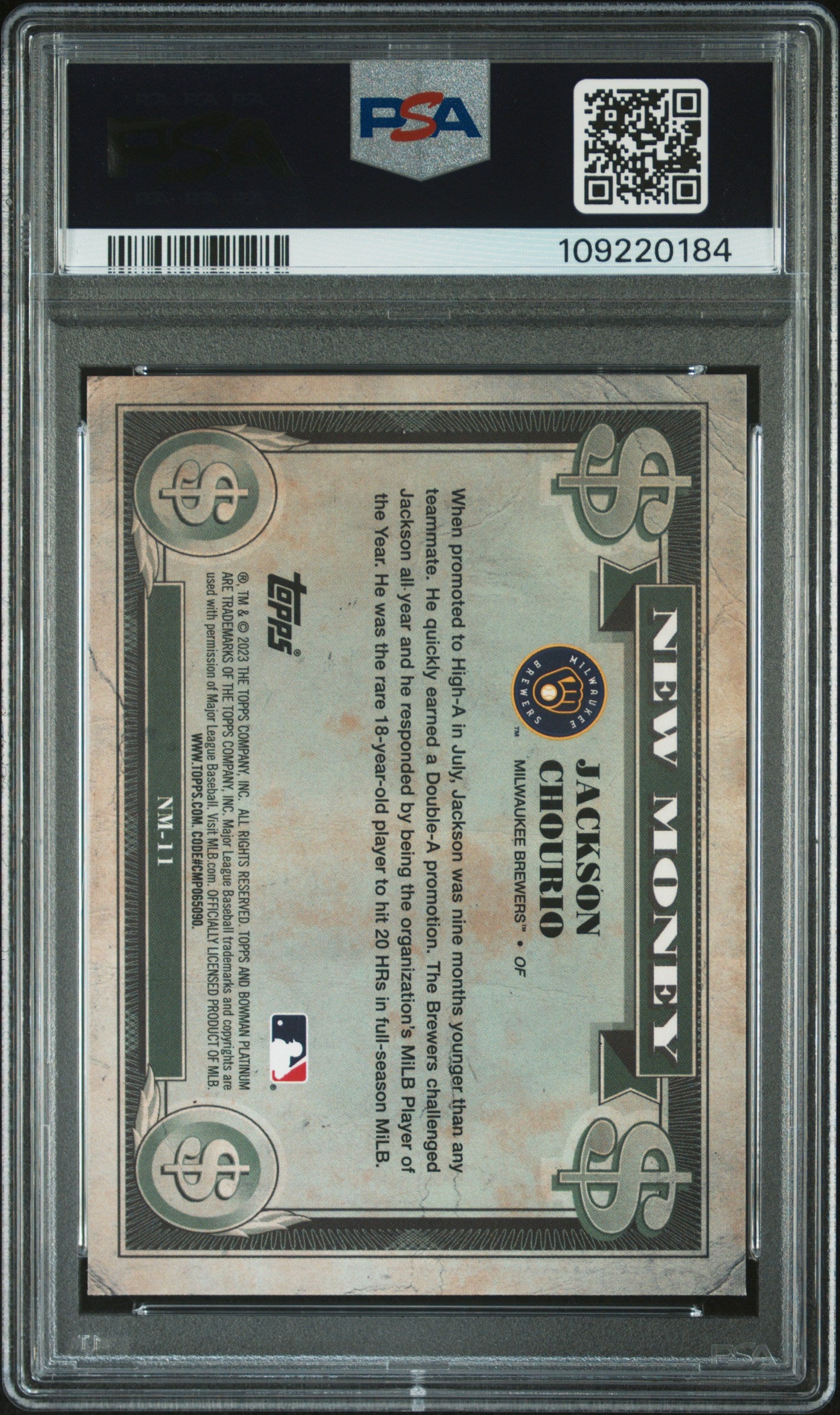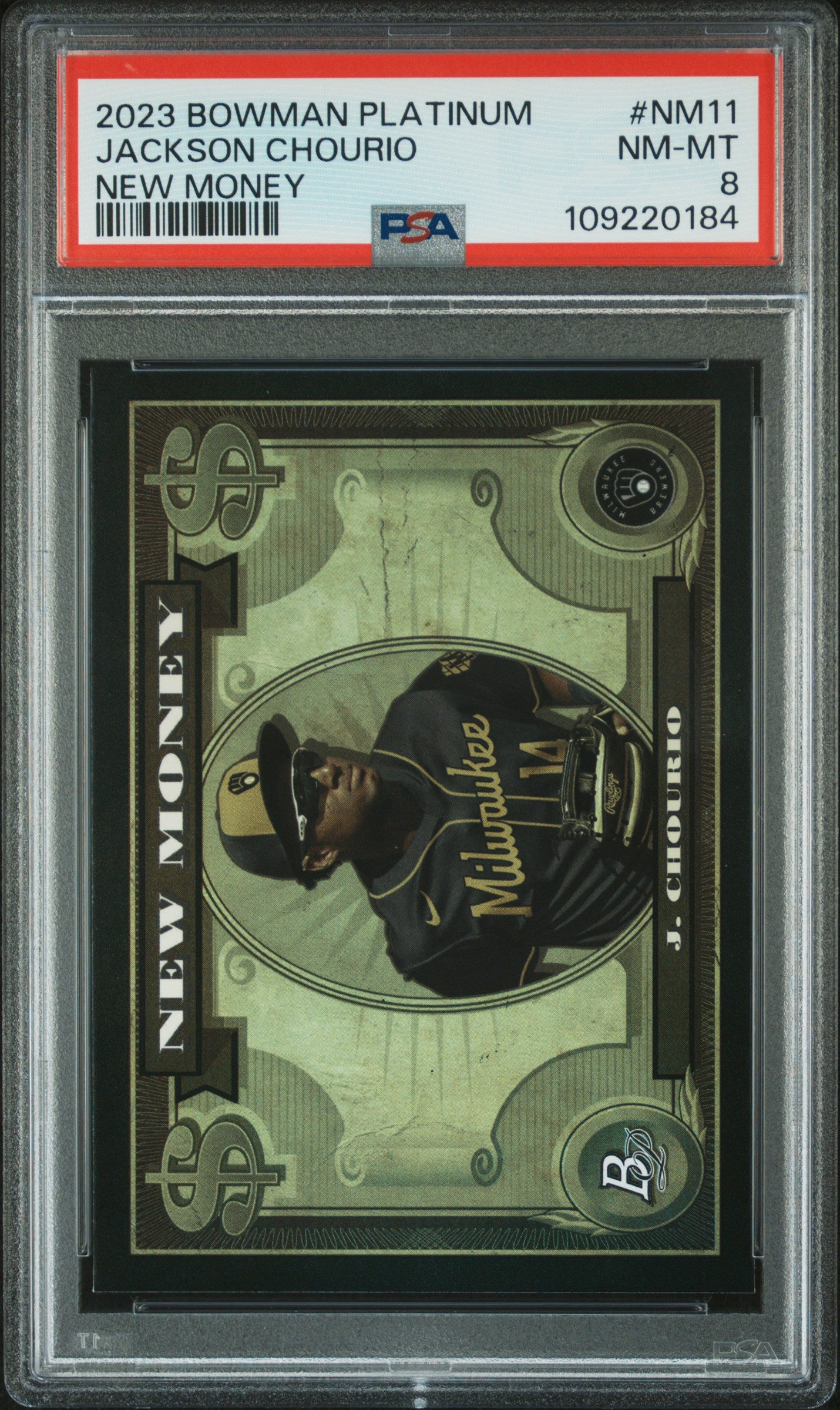 2023 BOWMAN PLATINUM NEW MONEY JACKSON CHOURIO #NM11 GRADED PSA 8 NM-MT RARE