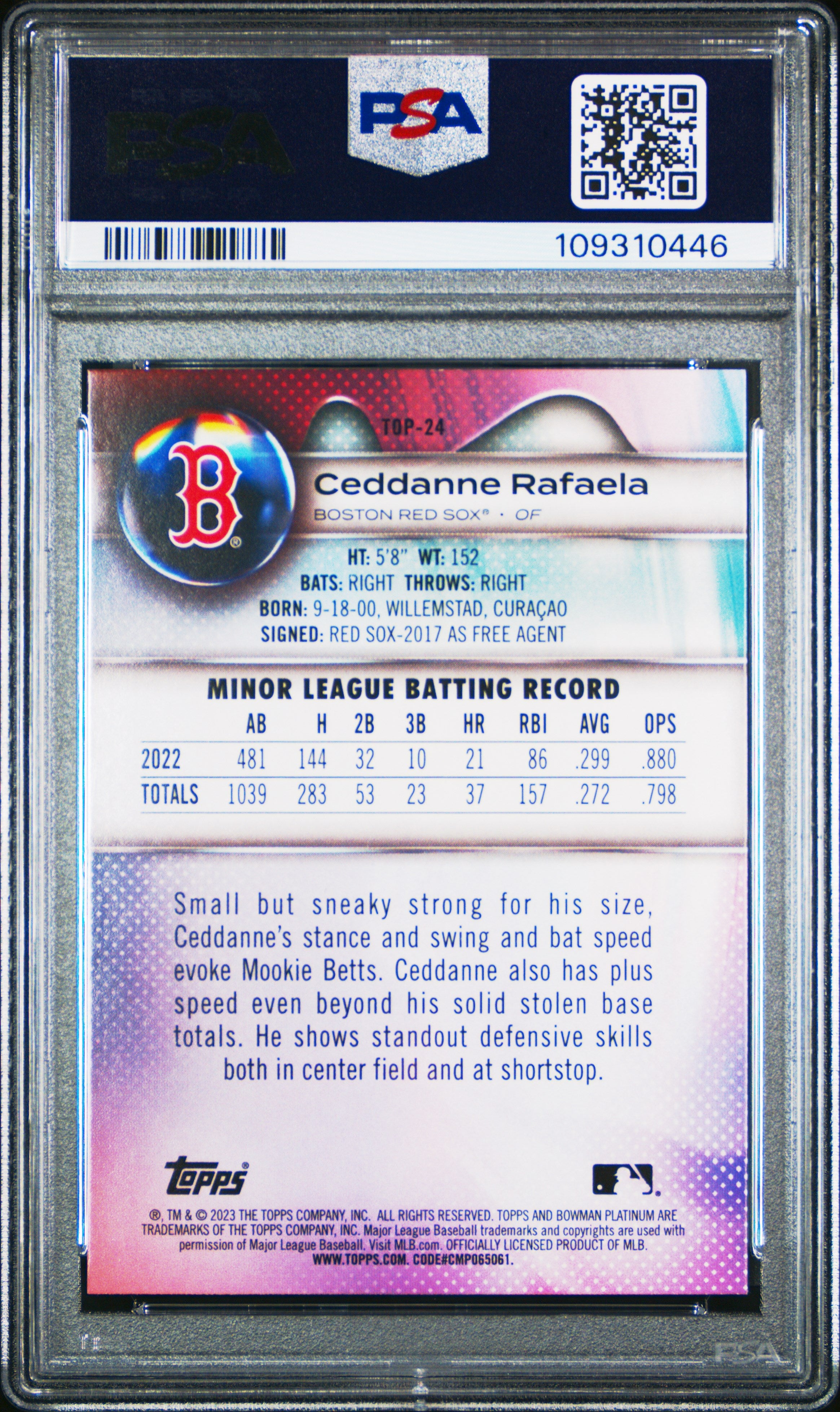 2023 BOWMAN PLATINUM CEDDANNE RAFAELA #TOP24 ICE FOIL ROOKIE RC PSA 10 *POP 1*!!