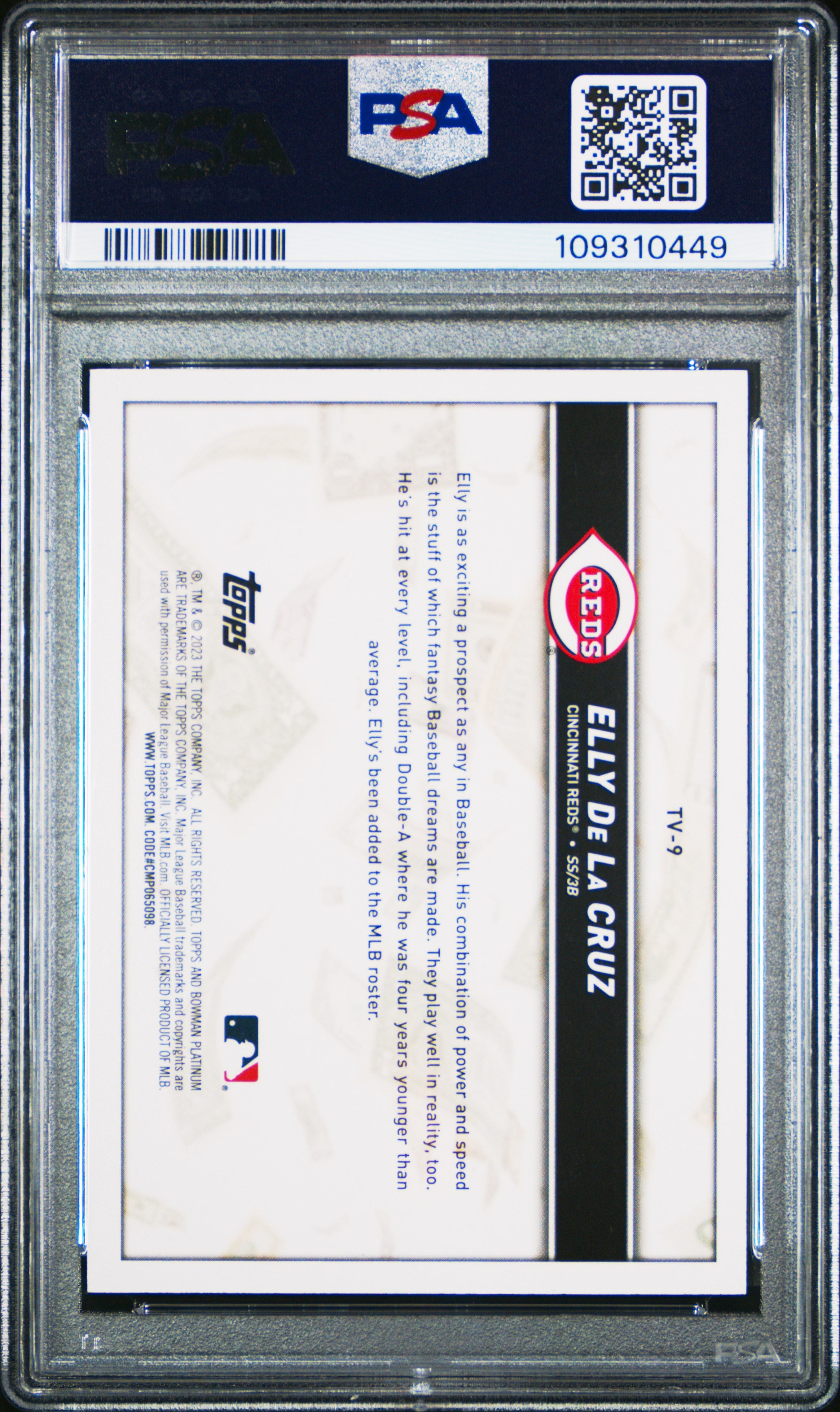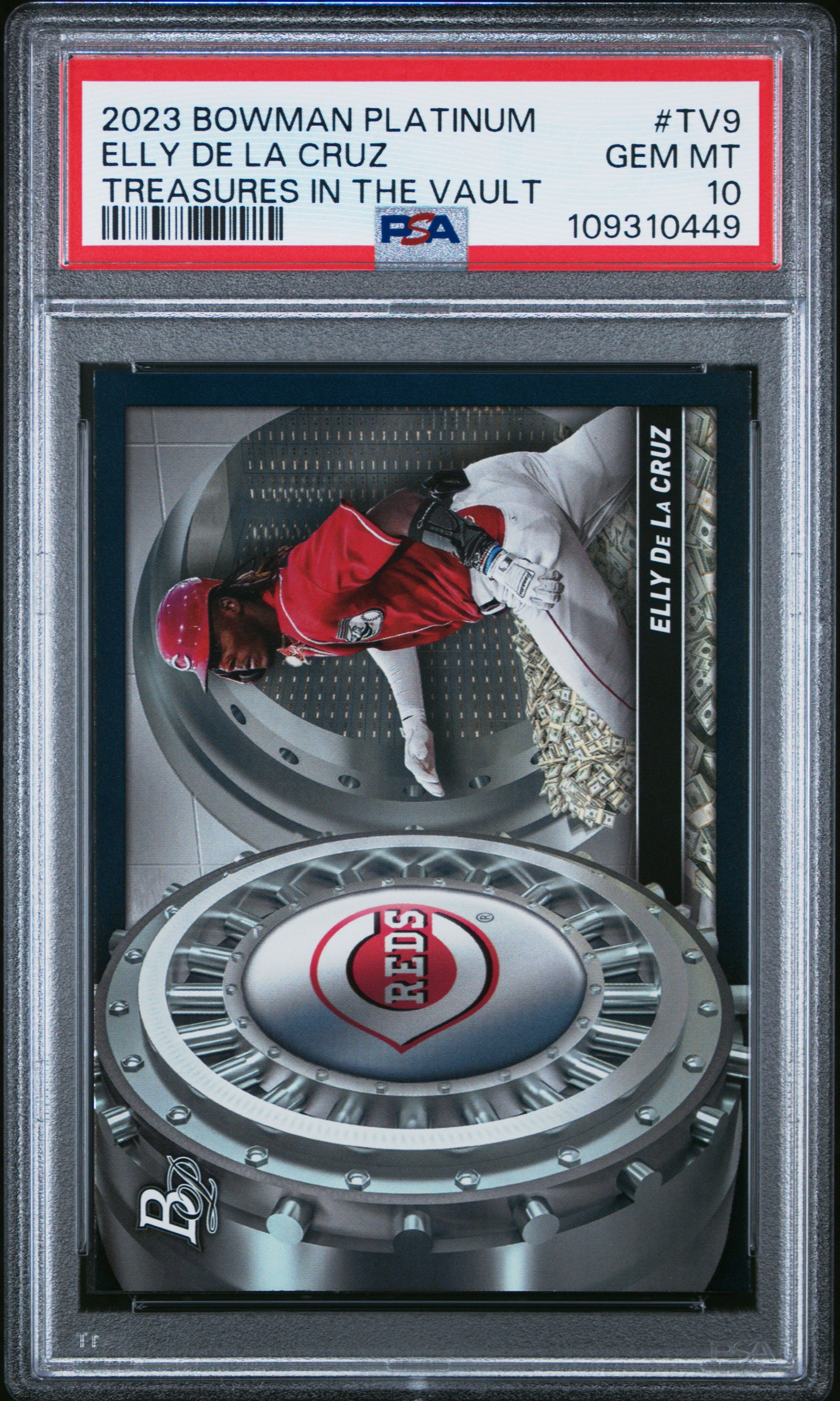 Home 2023 BOWMAN PLATINUM TREASURES IN THE VAULT ELLY DE LA CRUZ SSP #TV9 PSA 10 *POP3* RARE!