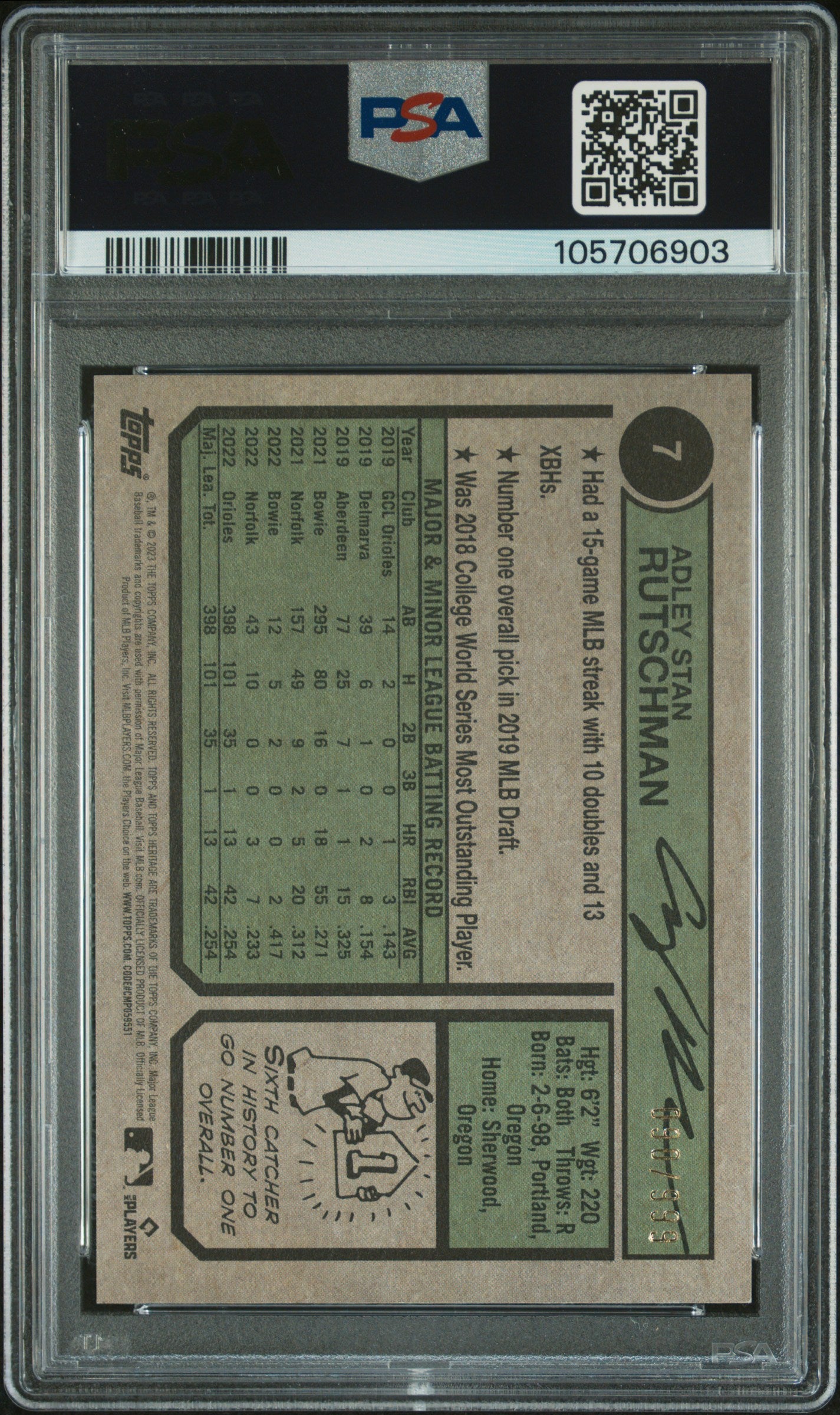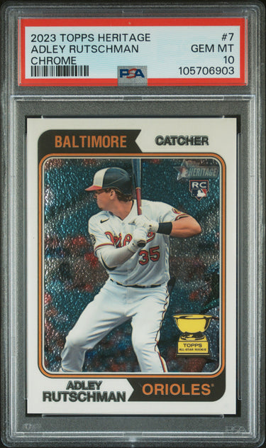 Home 2023 TOPPS HERITAGE CHROME ADLEY RUTSCHMAN #7 ROOKIE RC /999 PSA 10 GEM MINT