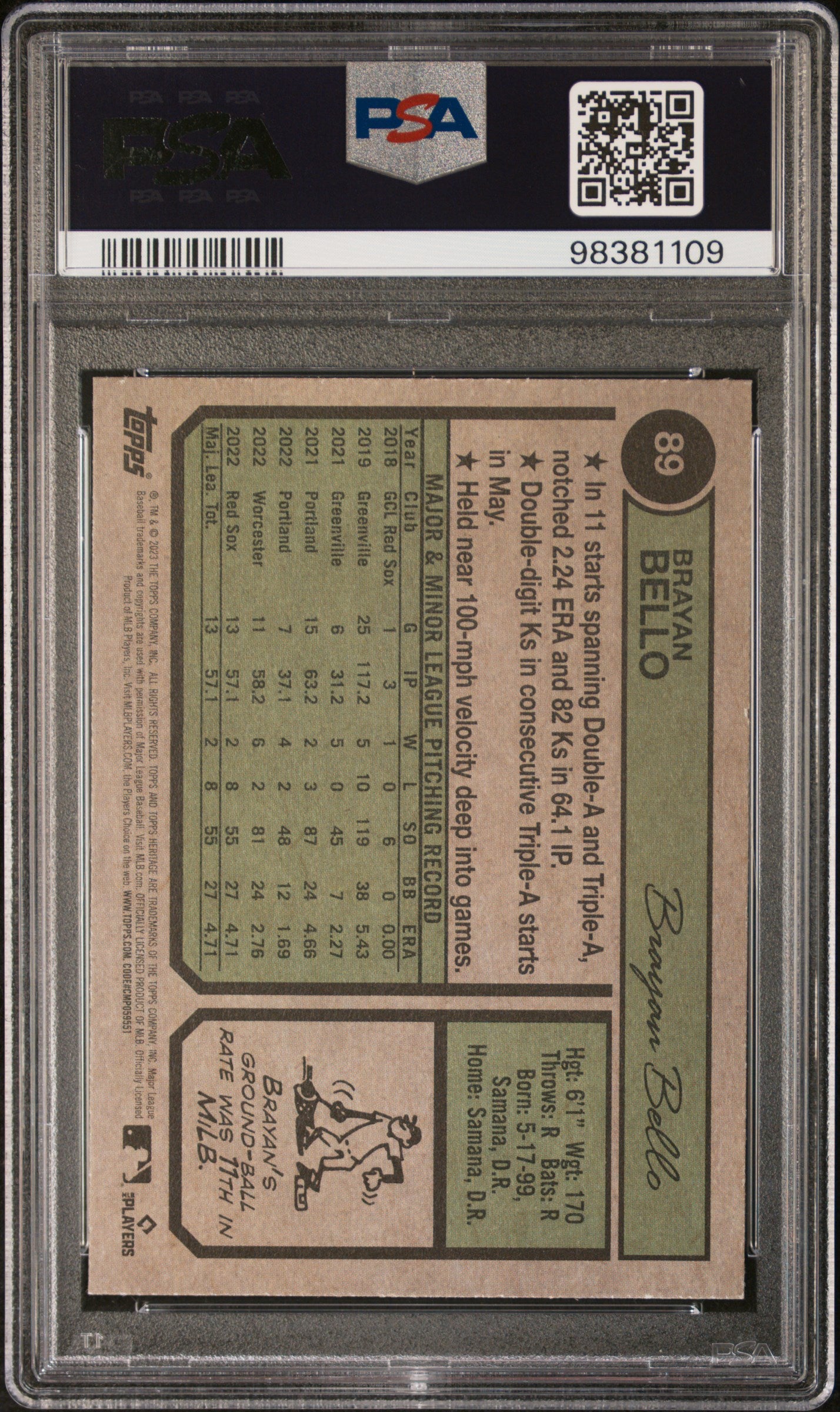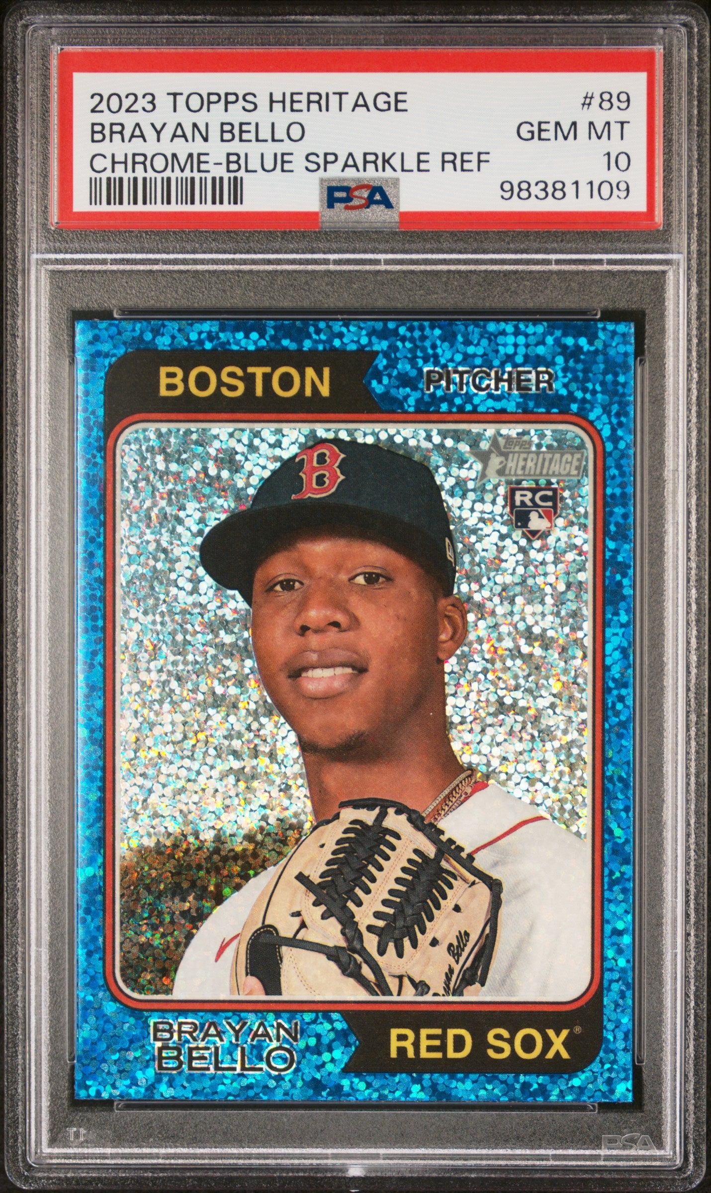 Home 2023 TOPPS HERITAGE CHROME BRAYAN BELLO #89 BLUE SPARKLE RC PSA 10 *POP4*