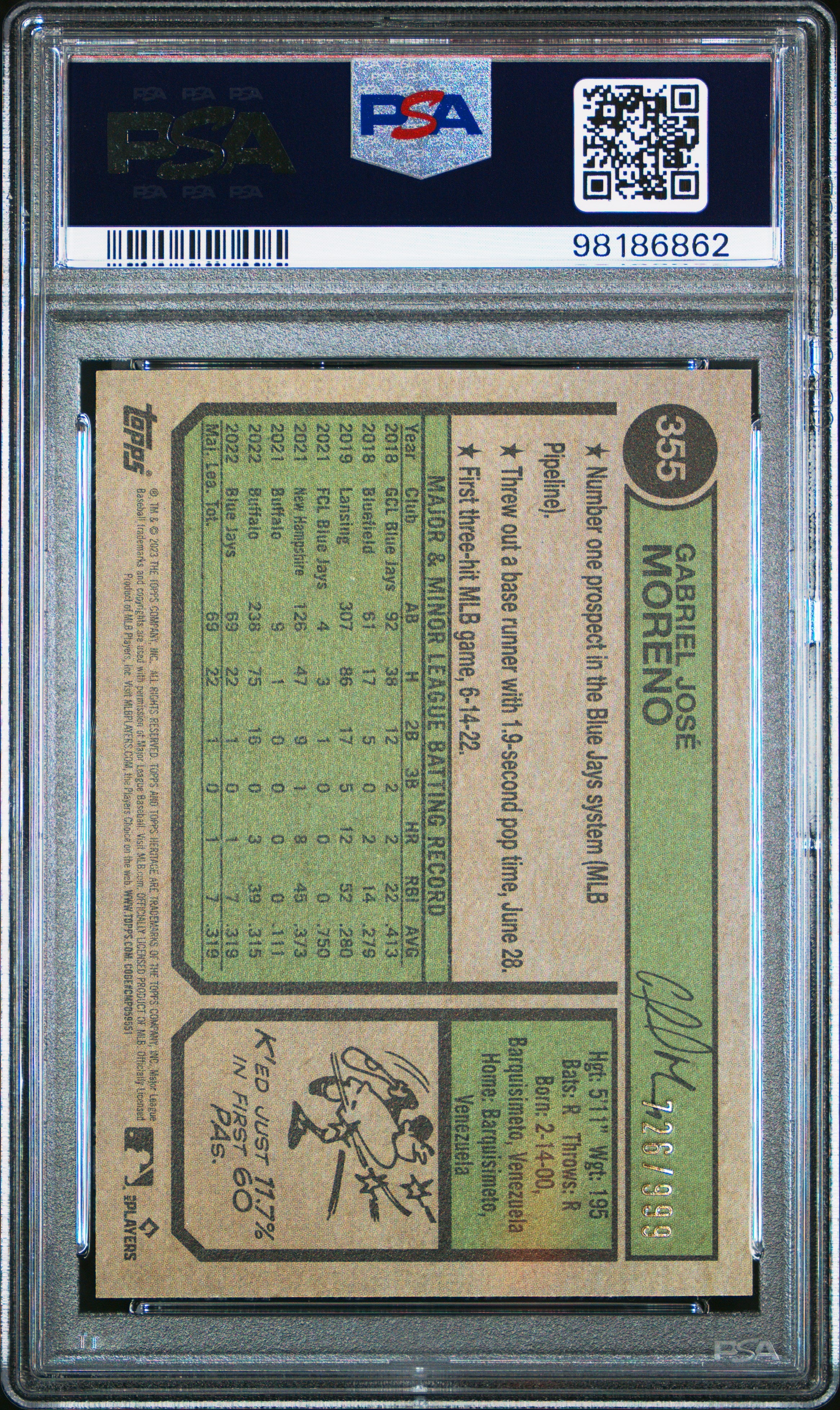 2023 TOPPS HERITAGE CHROME GABRIEL MORENO #355 ROOKIE CARD RC /999 PSA 10 GEM