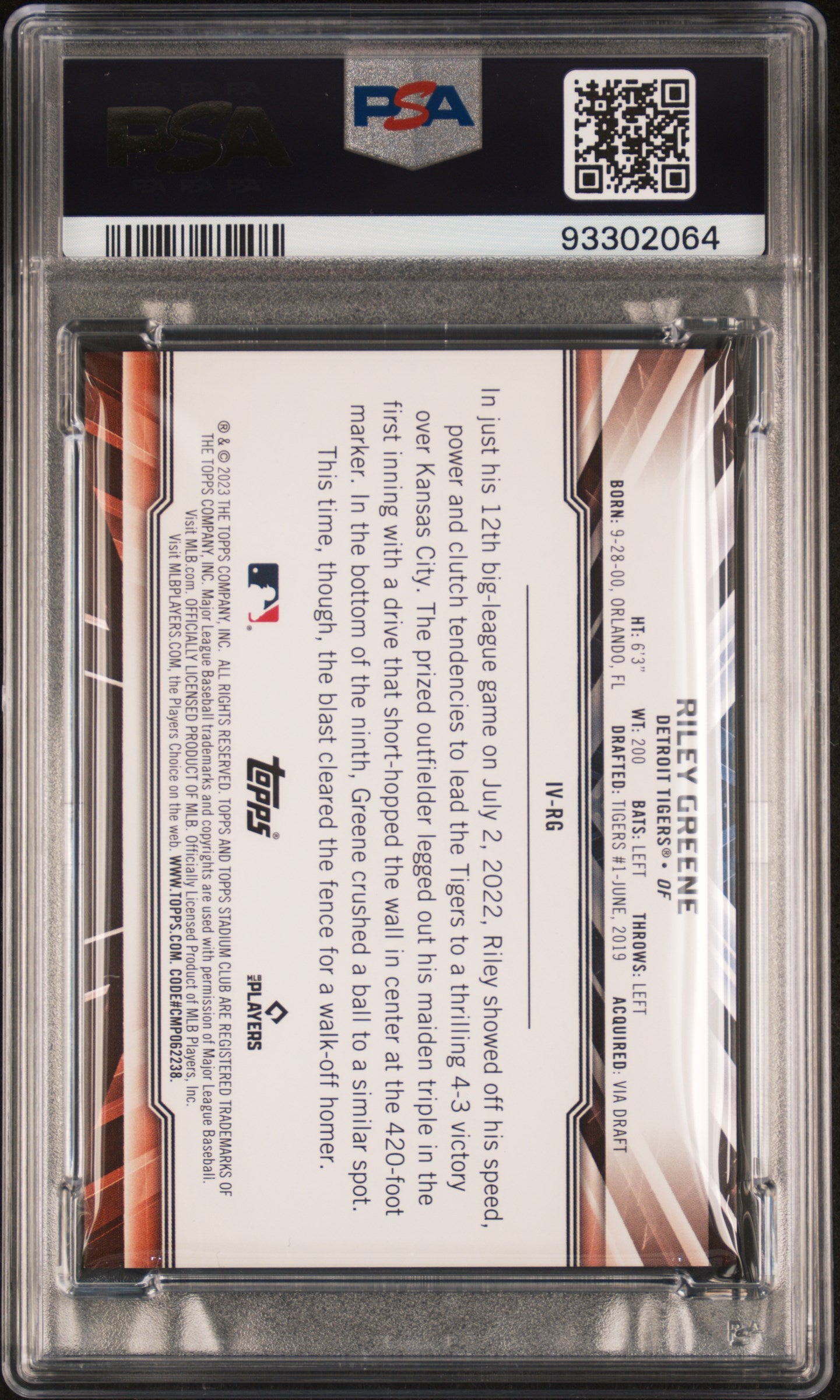 Home 2023 TOPPS STADIUM CLUB INSTAVISION RILEY GREENE #IVRG ROOKIE RC PSA 10 *POP2*