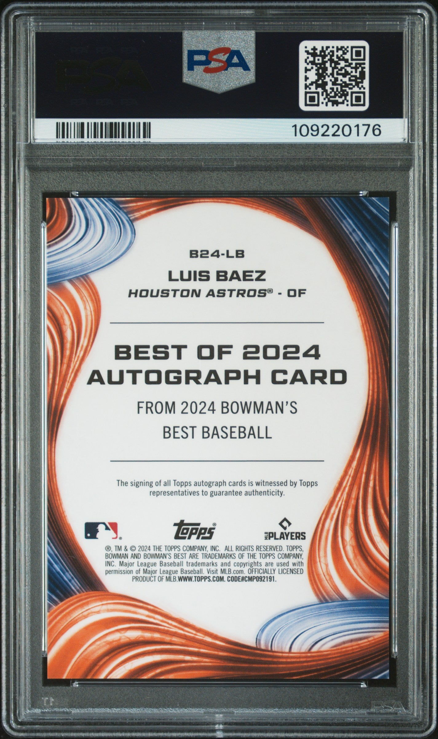 2024 BOWMAN'S BEST LUIS BAEZ AUTO #B24LB GRADED PSA 10 GEM MINT ASTROS