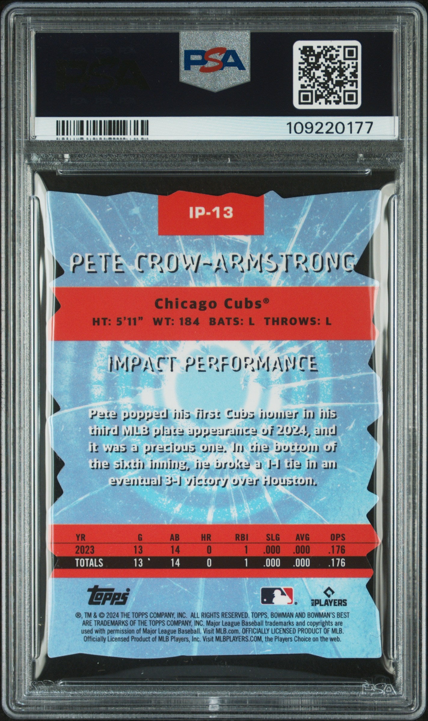 2024 BOWMAN'S BEST IMPACT PETE CROW-ARMSTRONG IP13 ROOKIE LAVA PSA 10 *POP1