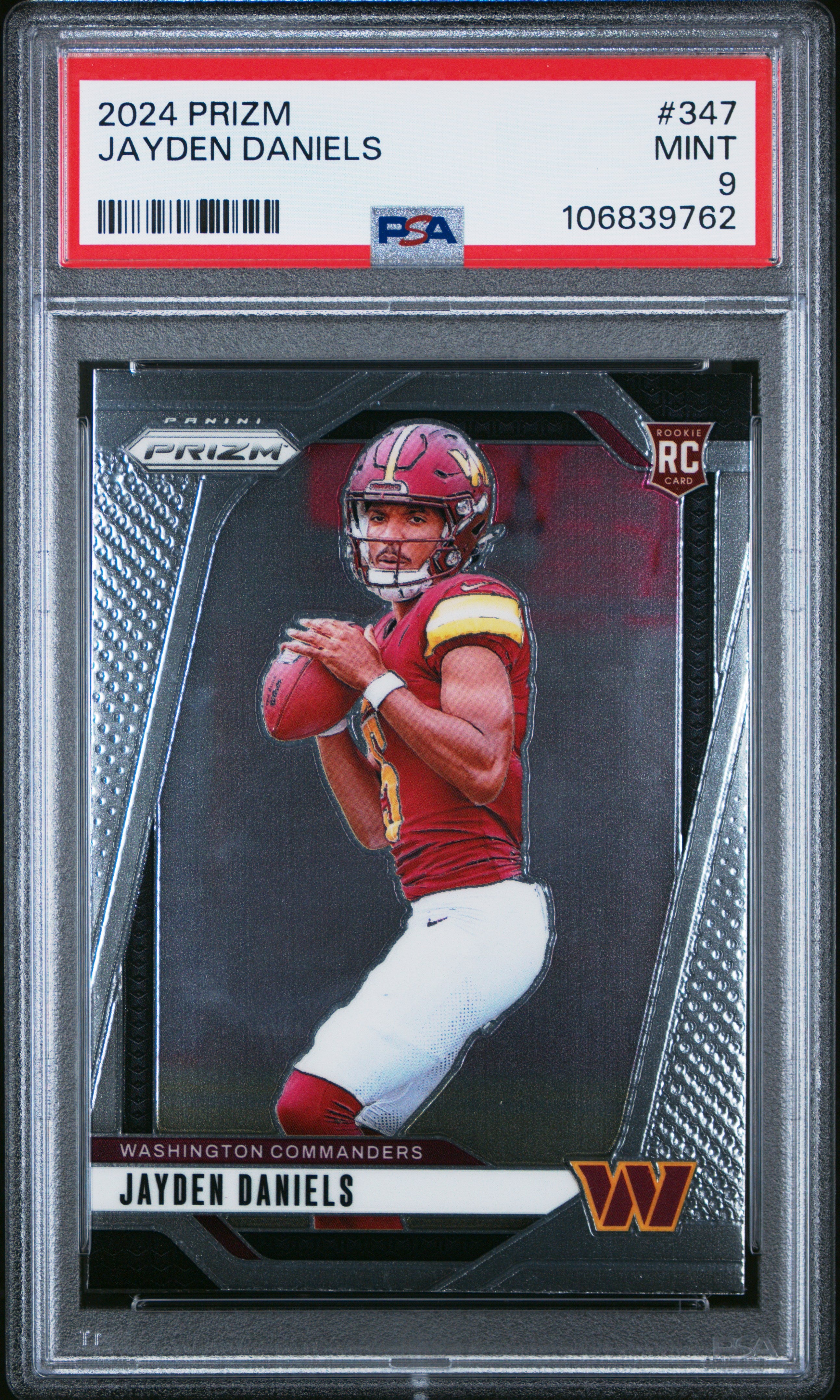 2024 PANINI PRIZM JAYDEN DANIELS #347 ROOKIE CARD RC GRADED PSA 9 MINT SHARP!
