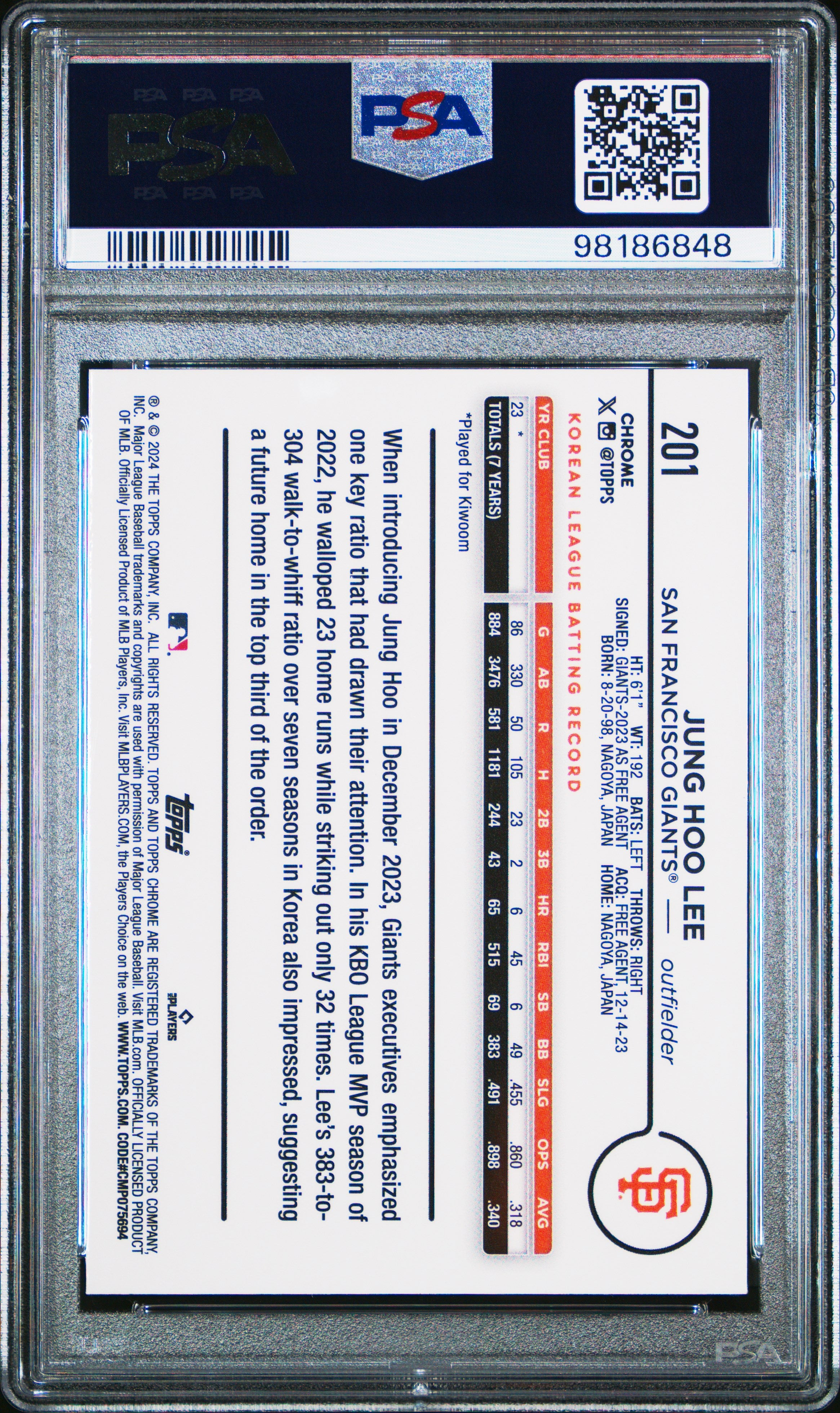 2024 TOPPS CHROME JUNG HOO LEE #201 ROOKIE CARD RC GRADED PSA 10 GEM MINT GIANTS