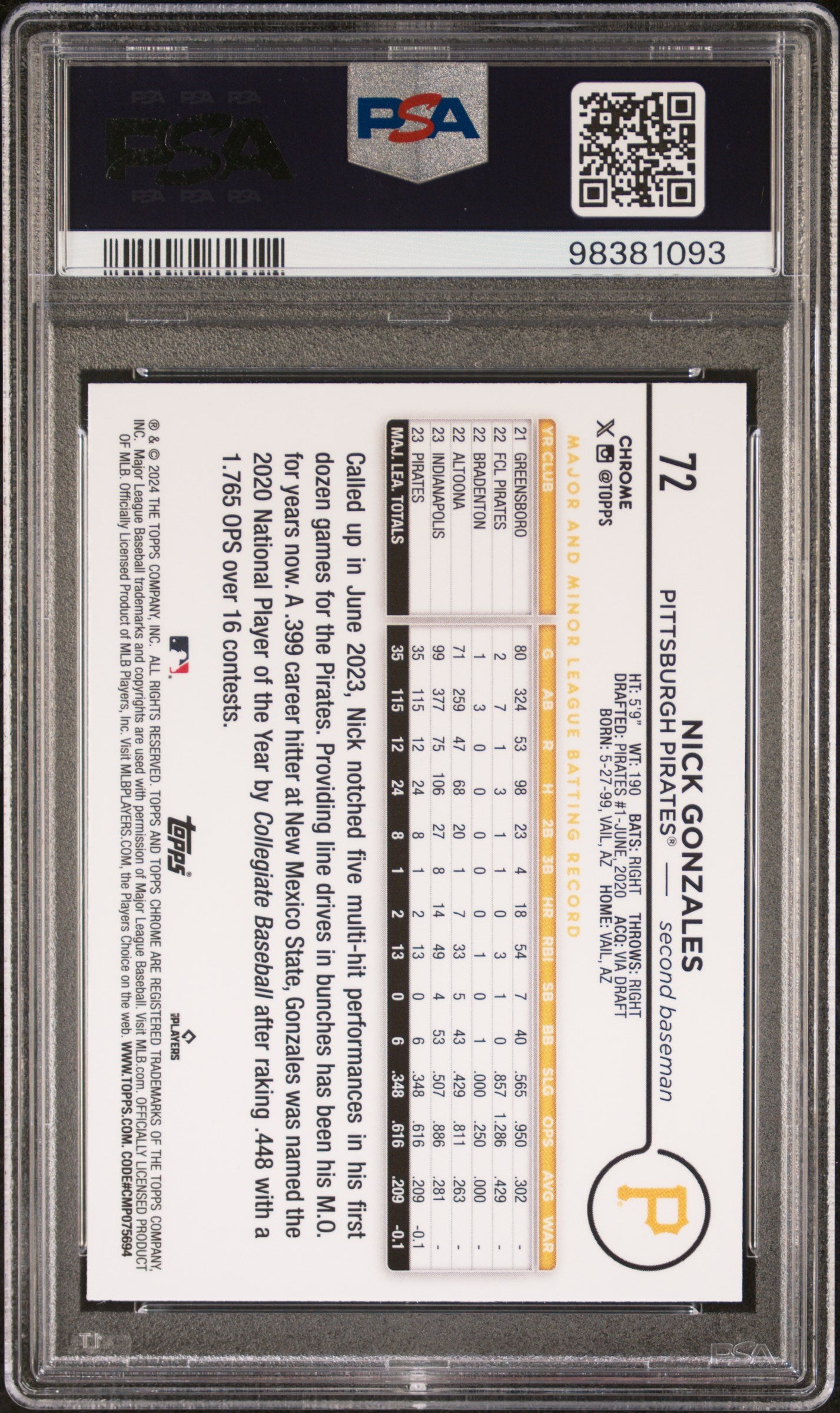 Home 2024 TOPPS CHROME NICK GONZALES #72 ROOKIE RC RAYWAVE REFRACTOR PSA 10 GEM MINT