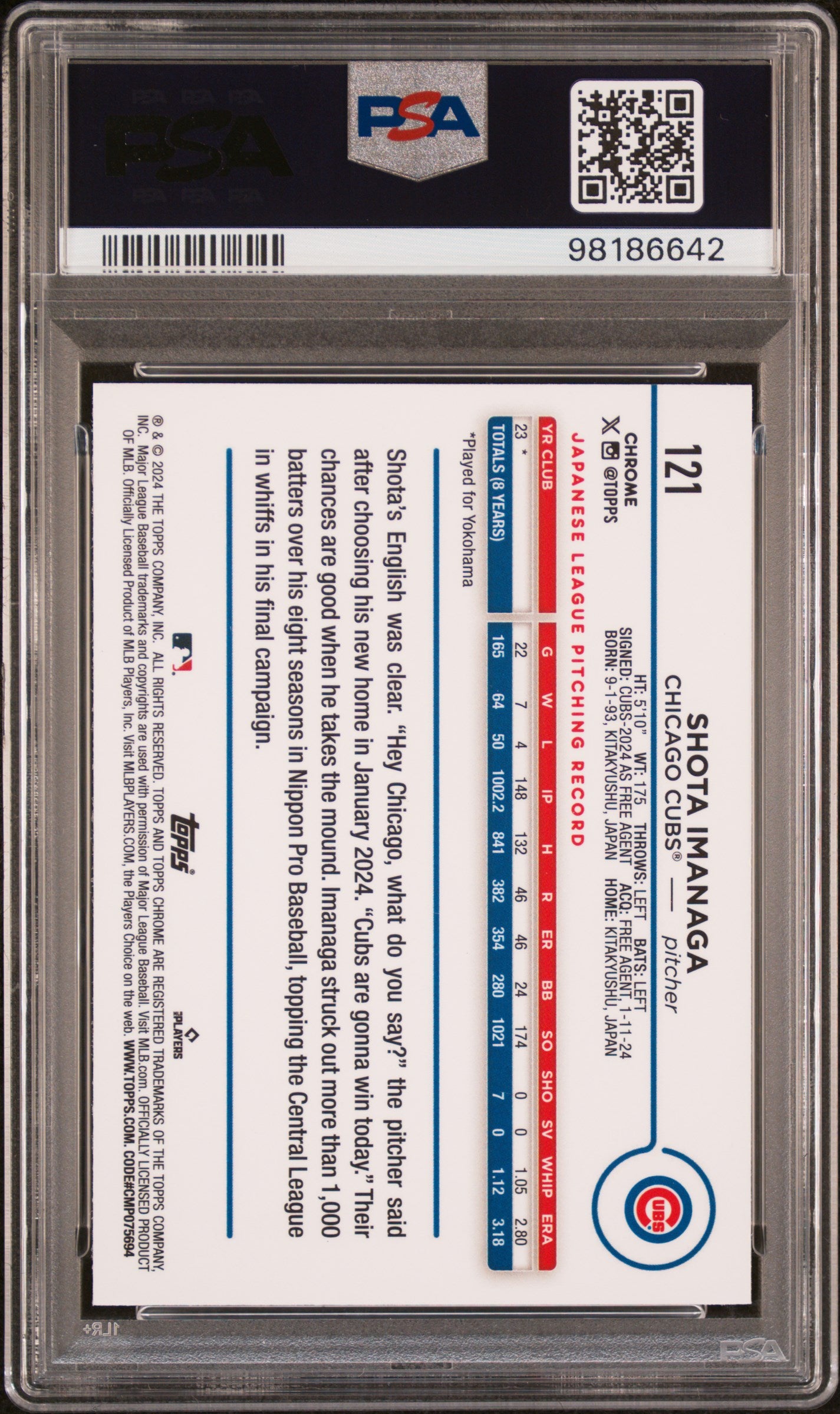 Home 2024 TOPPS CHROME SHOTA IMANAGA #121 ROOKIE CARD RC GRADED PSA 10 GEM MINT CUBS