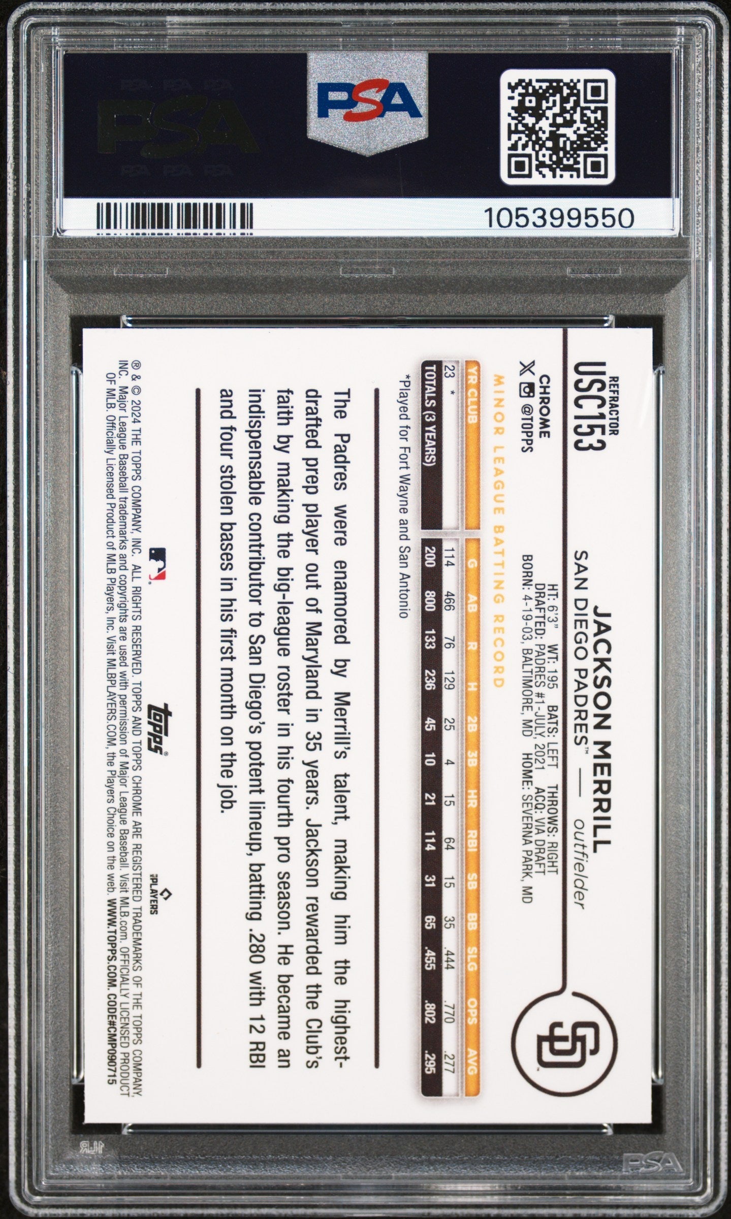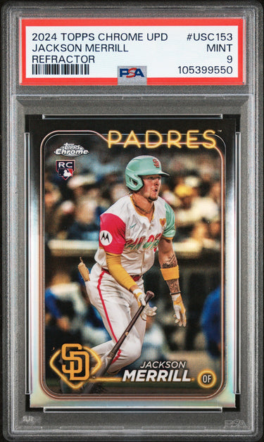 2024 TOPPS CHROME UPDATE JACKSON MERRILL #USC153 REFRACTOR ROOKIE RC PSA 9 MINT