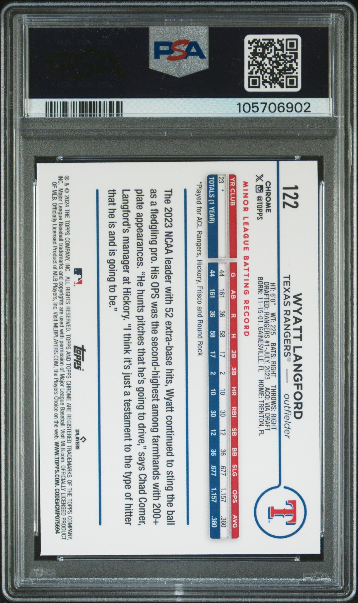 2024 TOPPS CHROME WYATT LANGFORD #122 ROOKIE CARD RC GRADED PSA 10 GEM MINT