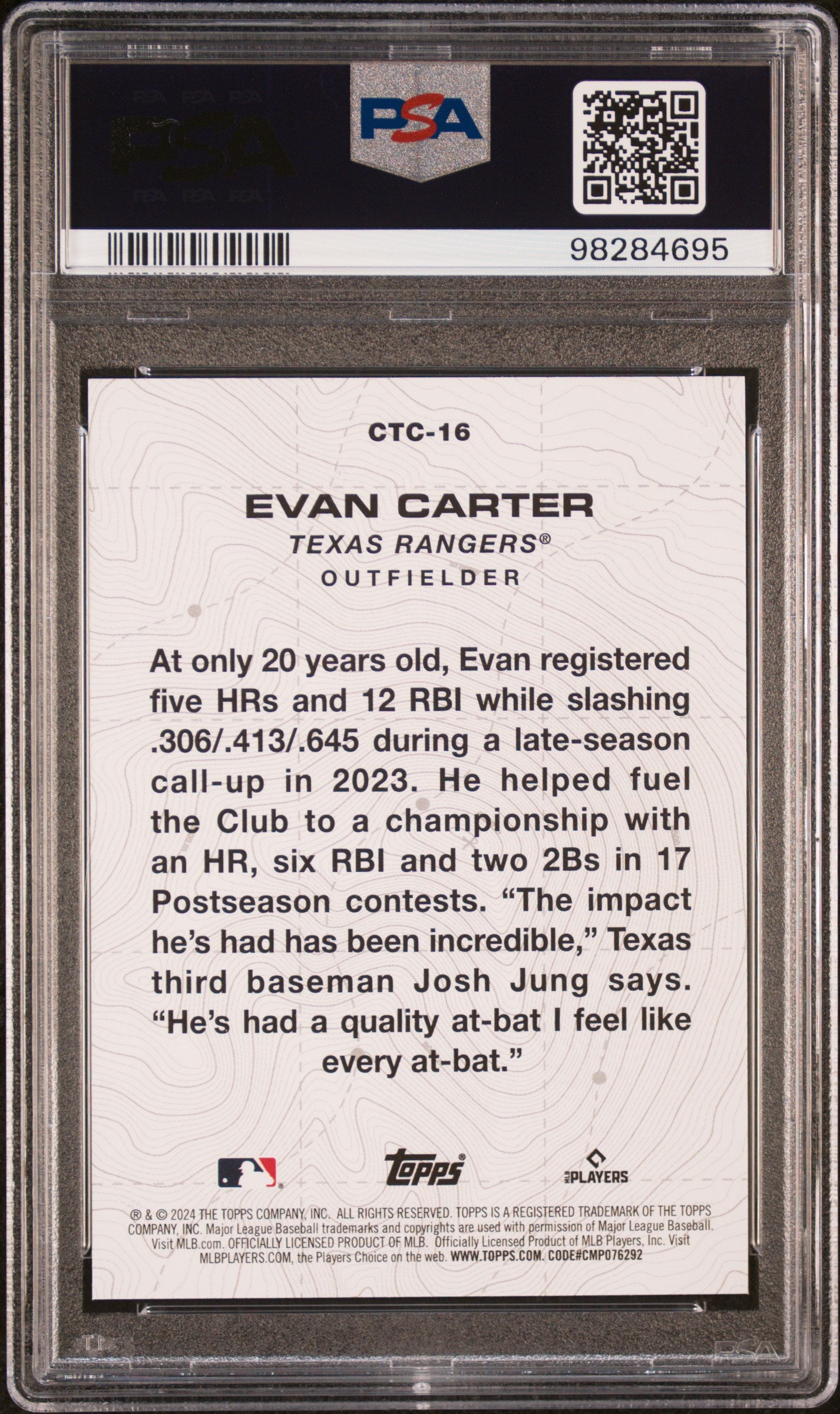 2024 TOPPS CITY TO CITY EVAN CARTER DFW #CTC16 ROOKIE RC GRADED PSA 10 GEM MINT