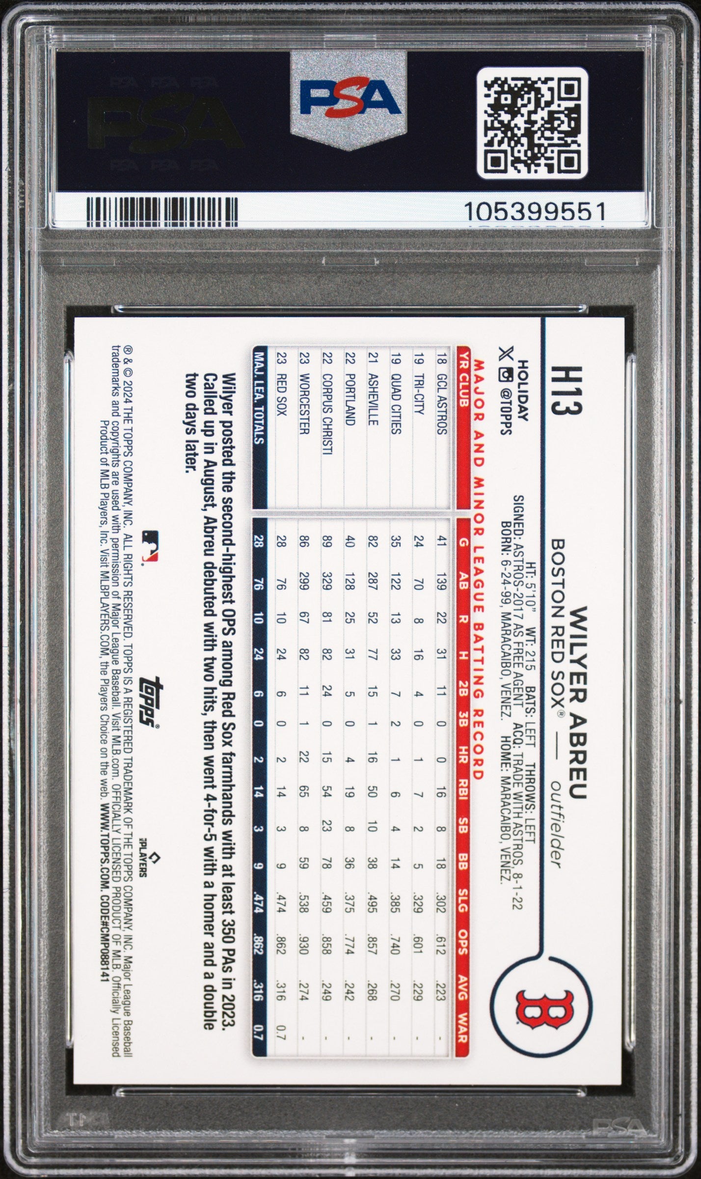 2024 TOPPS HOLIDAY WILYER ABREU #H13 SILVER GLITTER ROOKIE RC PSA 9 MINT RARE!