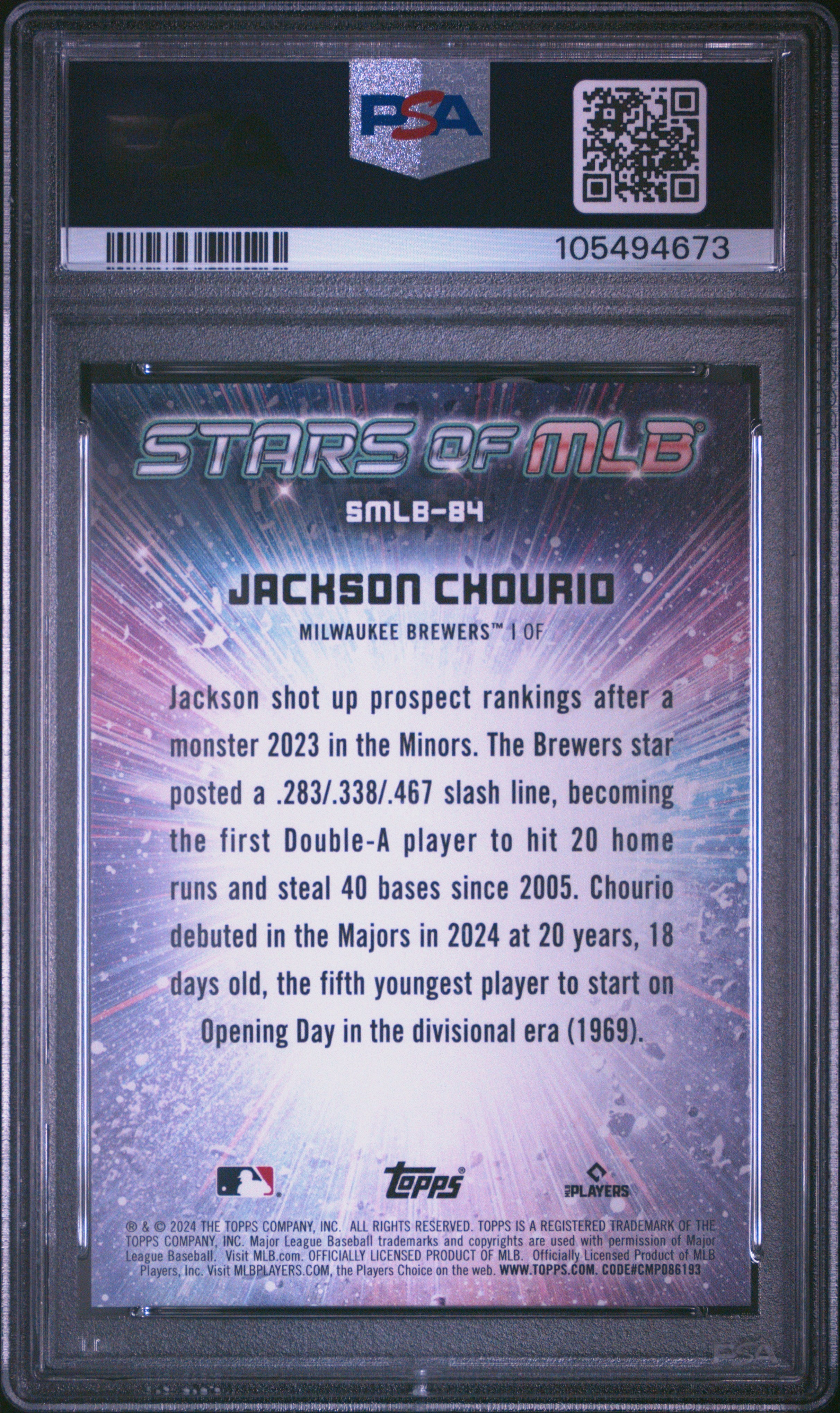 2024 TOPPS STARS OF MLB JACKSON CHOURIO #SMLB84 ROOKIE RC GRADED PSA 10 GEM MT